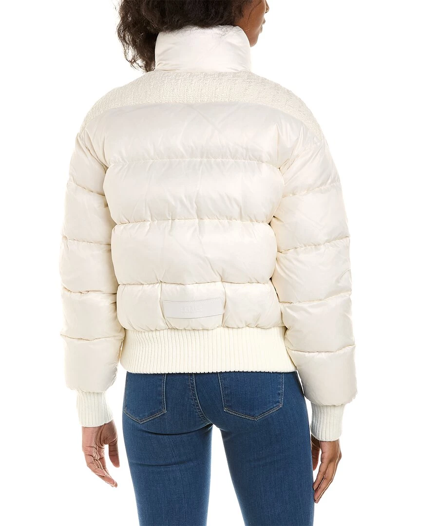 - Snowflake Down Coat In Pearl With Quilted Design, Funnel Neck, Tweed Trim, Two Front Pockets, And Rib Knit Trim